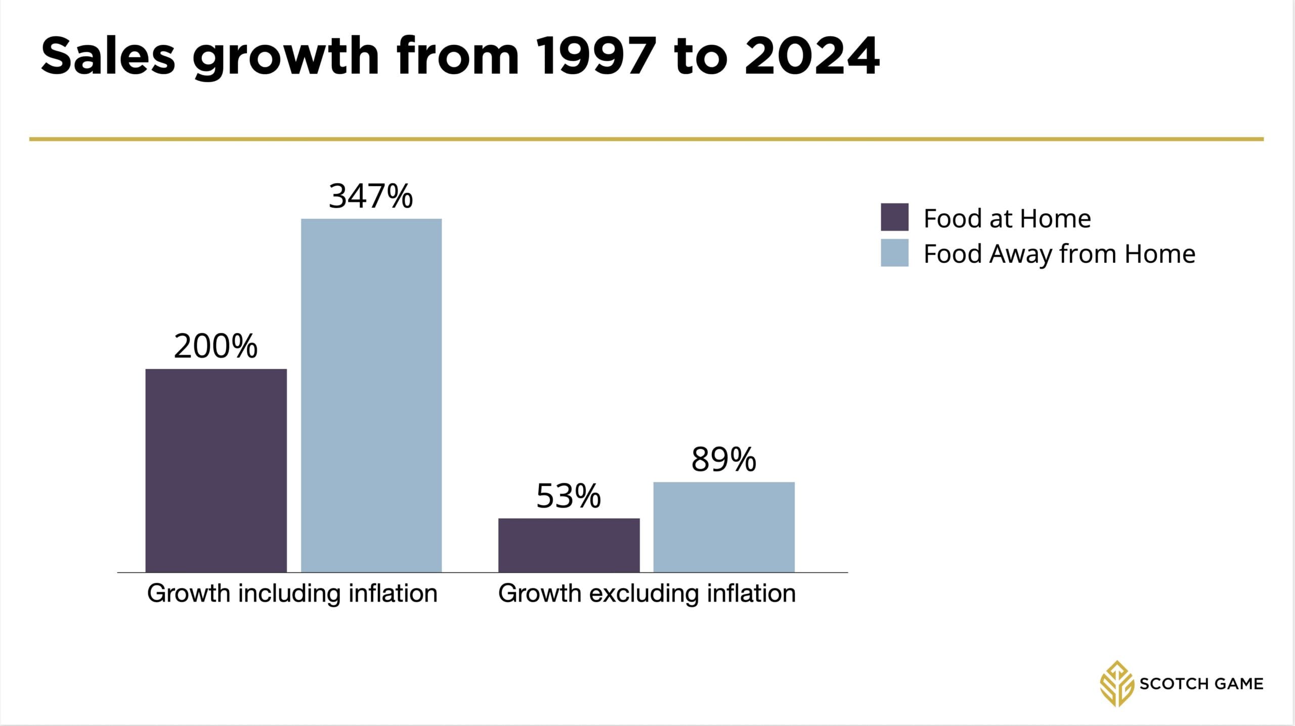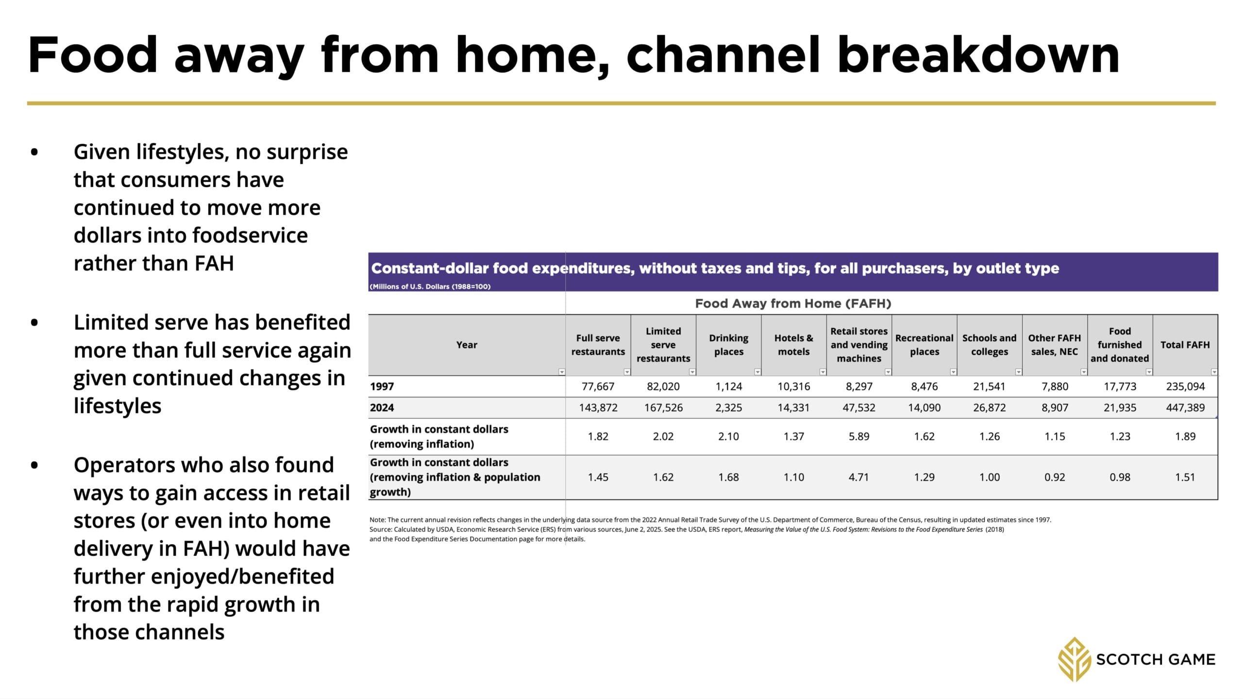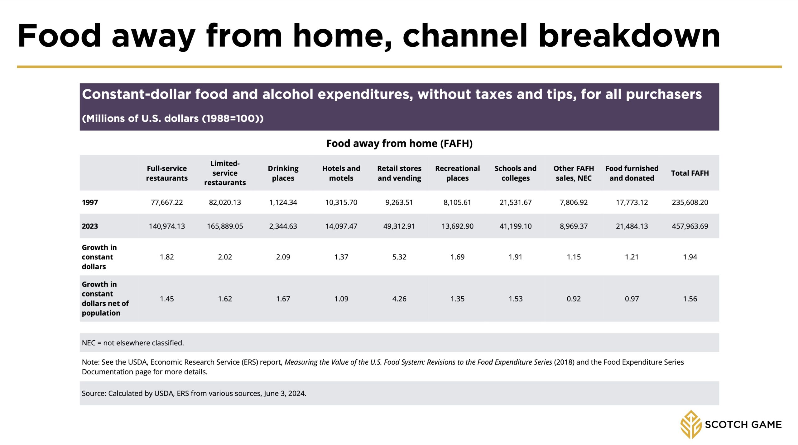 Both Food at Home (think grocery) and Food Away from Home (think restaurants).