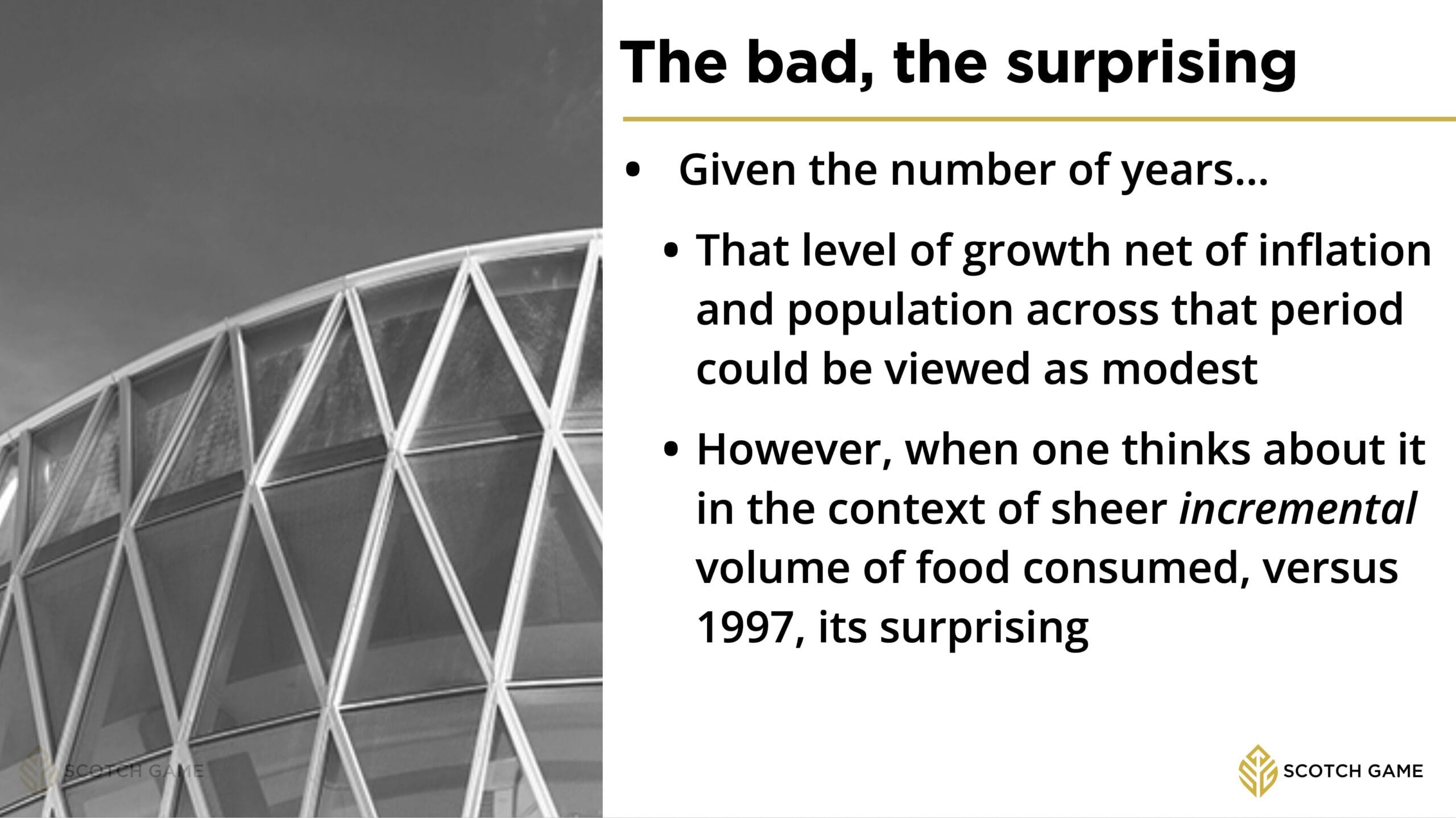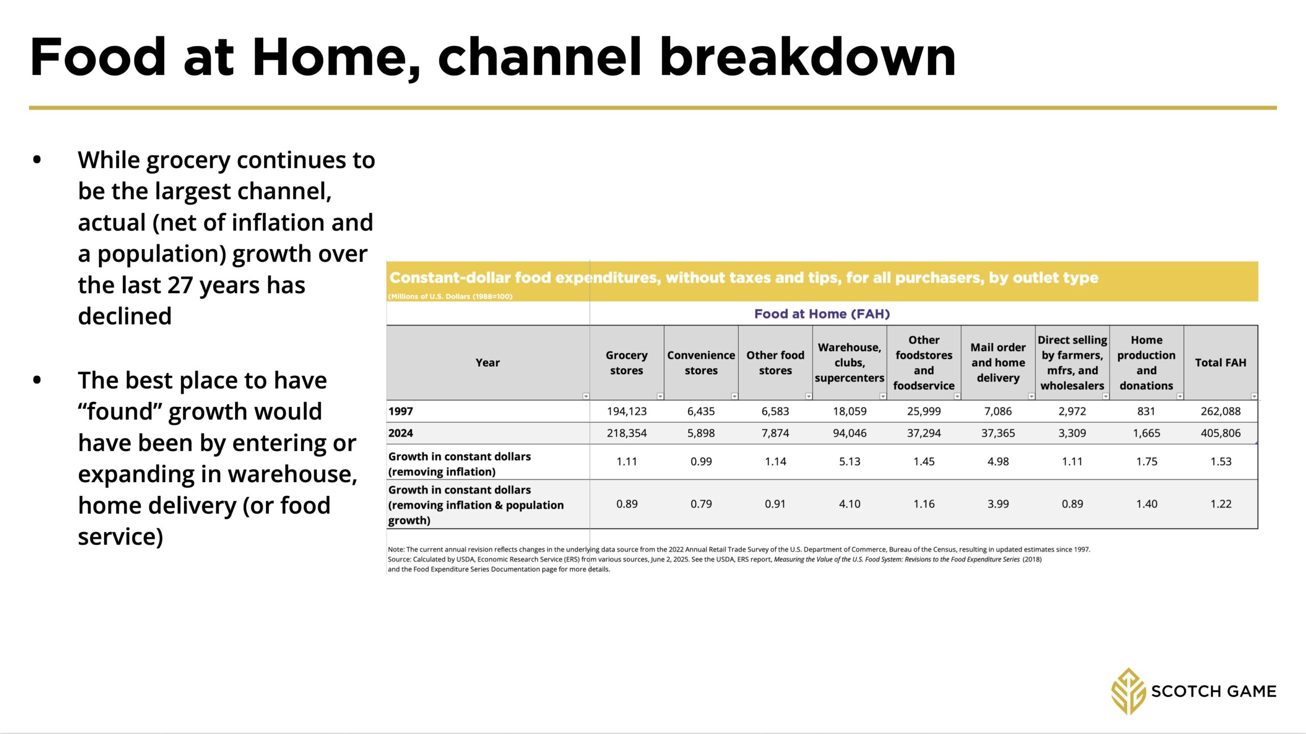 If you were in the grocery business in 1997 and stayed in the grocery business, you’d likely feel very different about your business than if you had also expanded into a warehouse club and mail-order/home delivery.